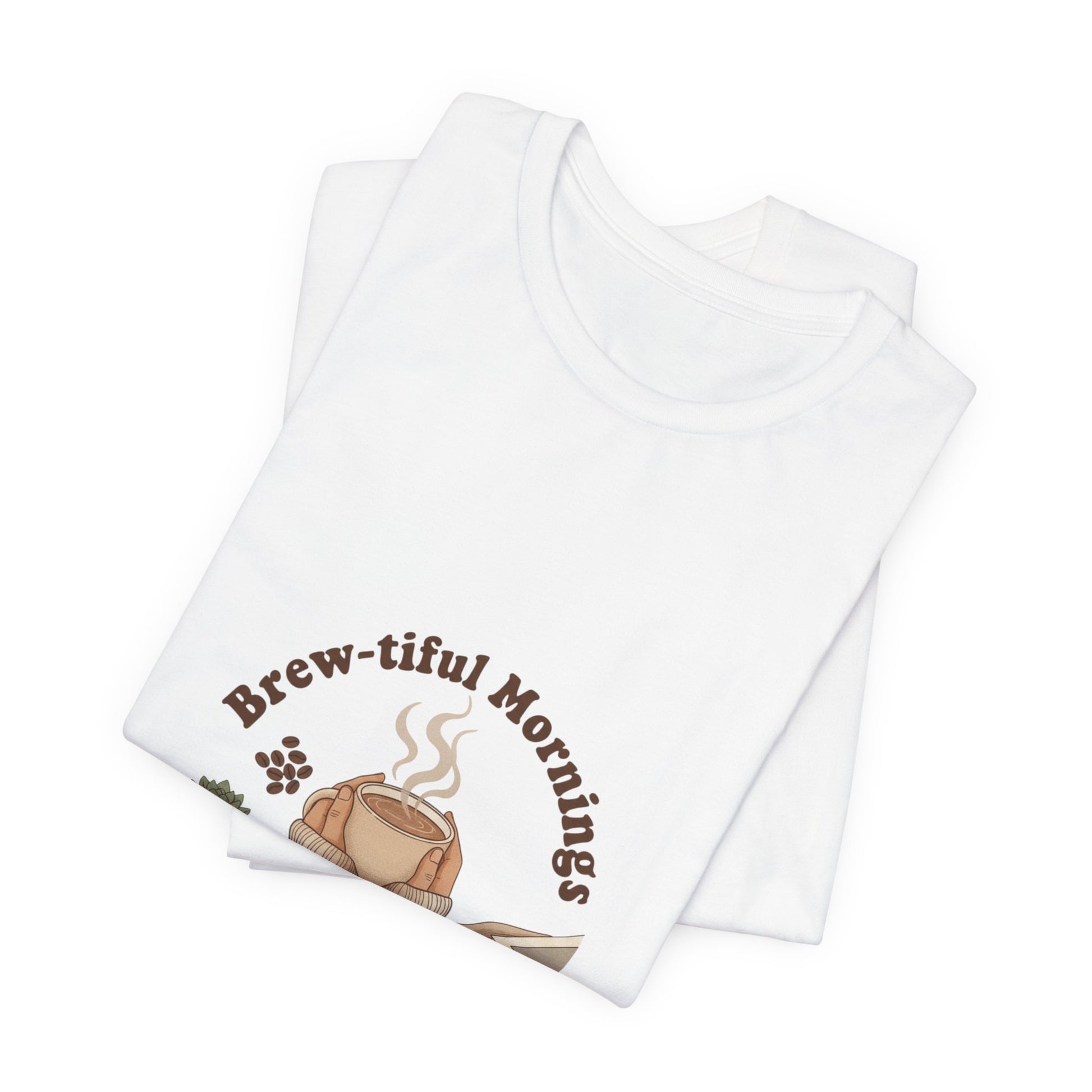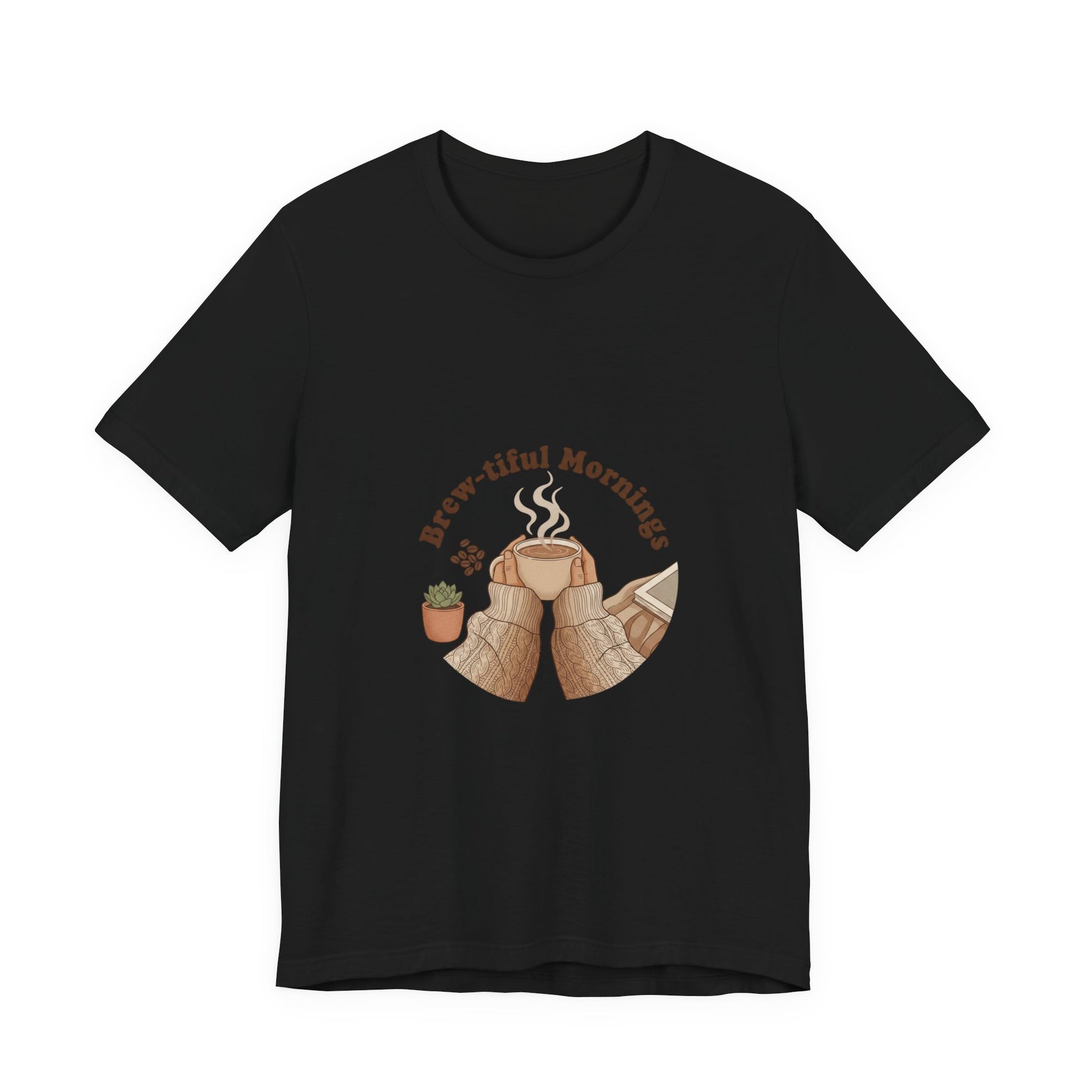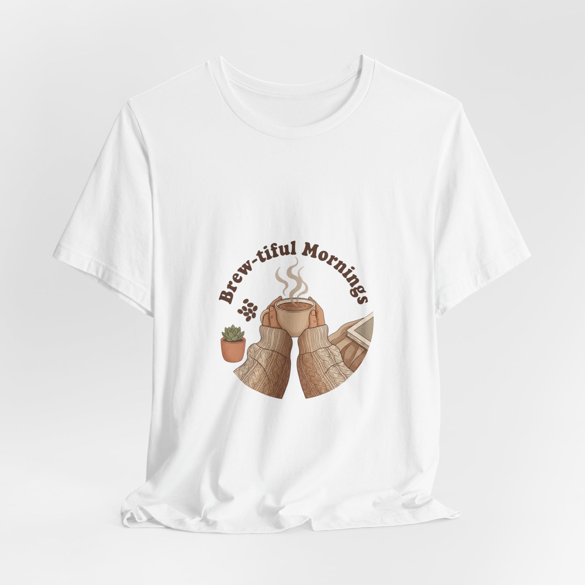 Brew-tiful Mornings Coffee Tee | latte art design, caffeine quote