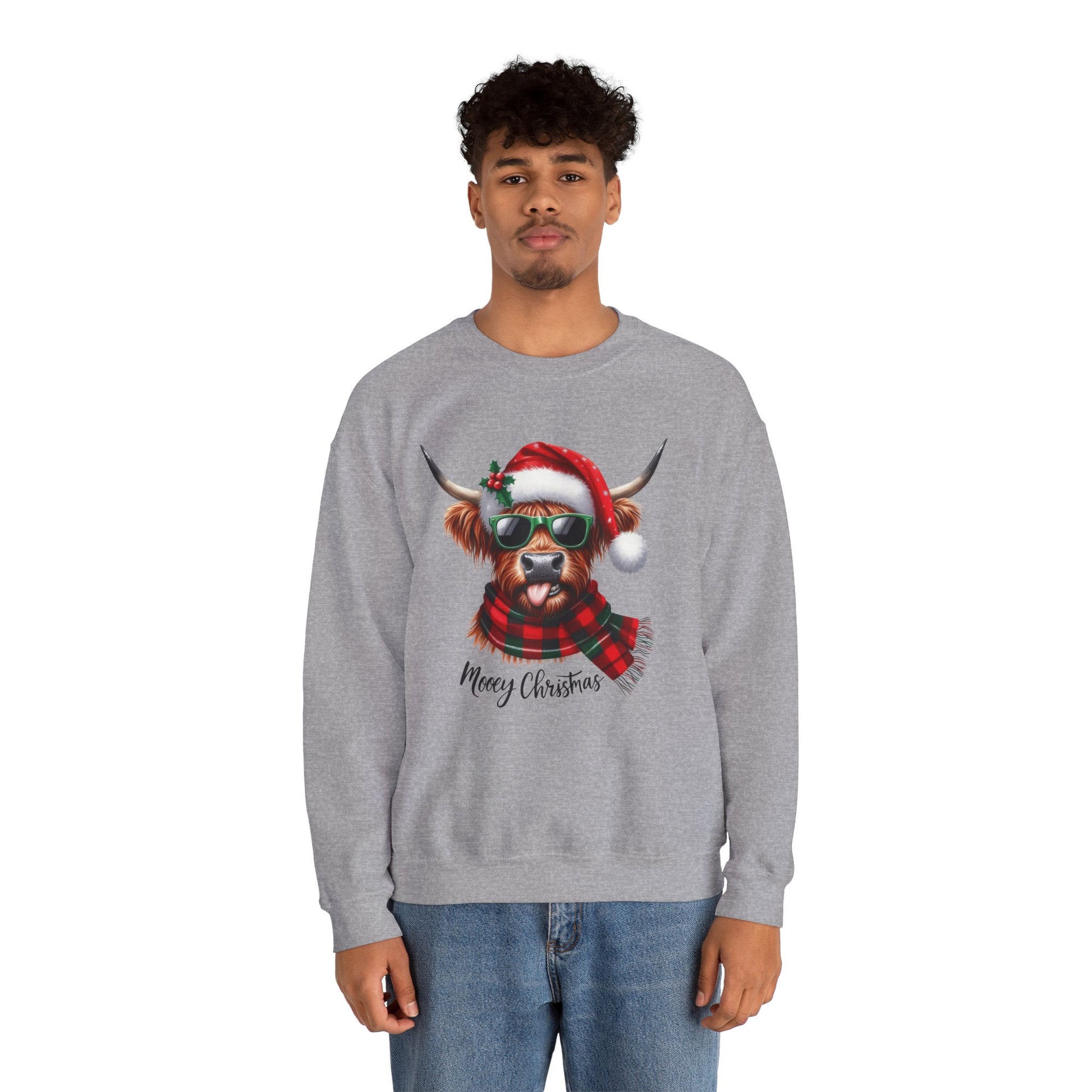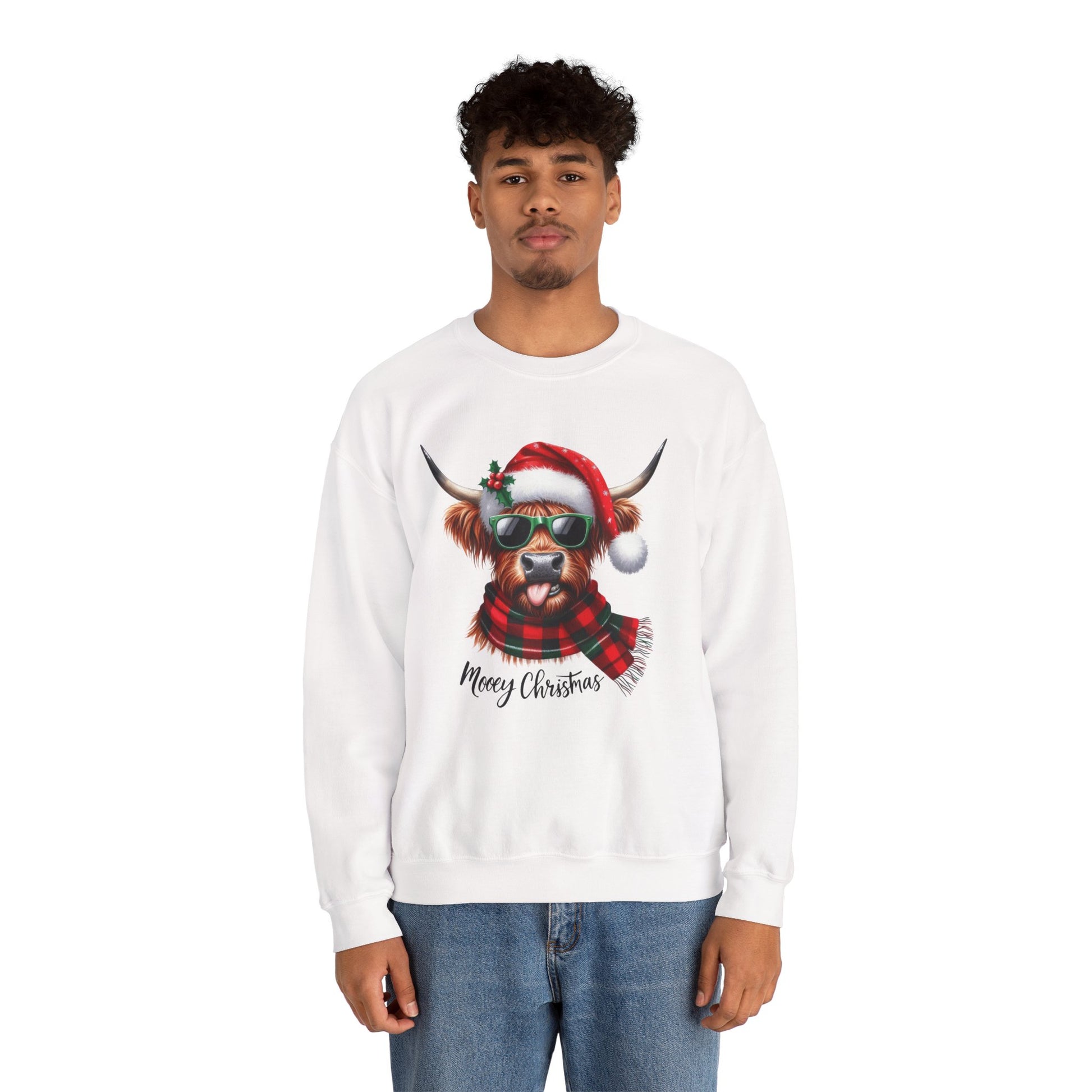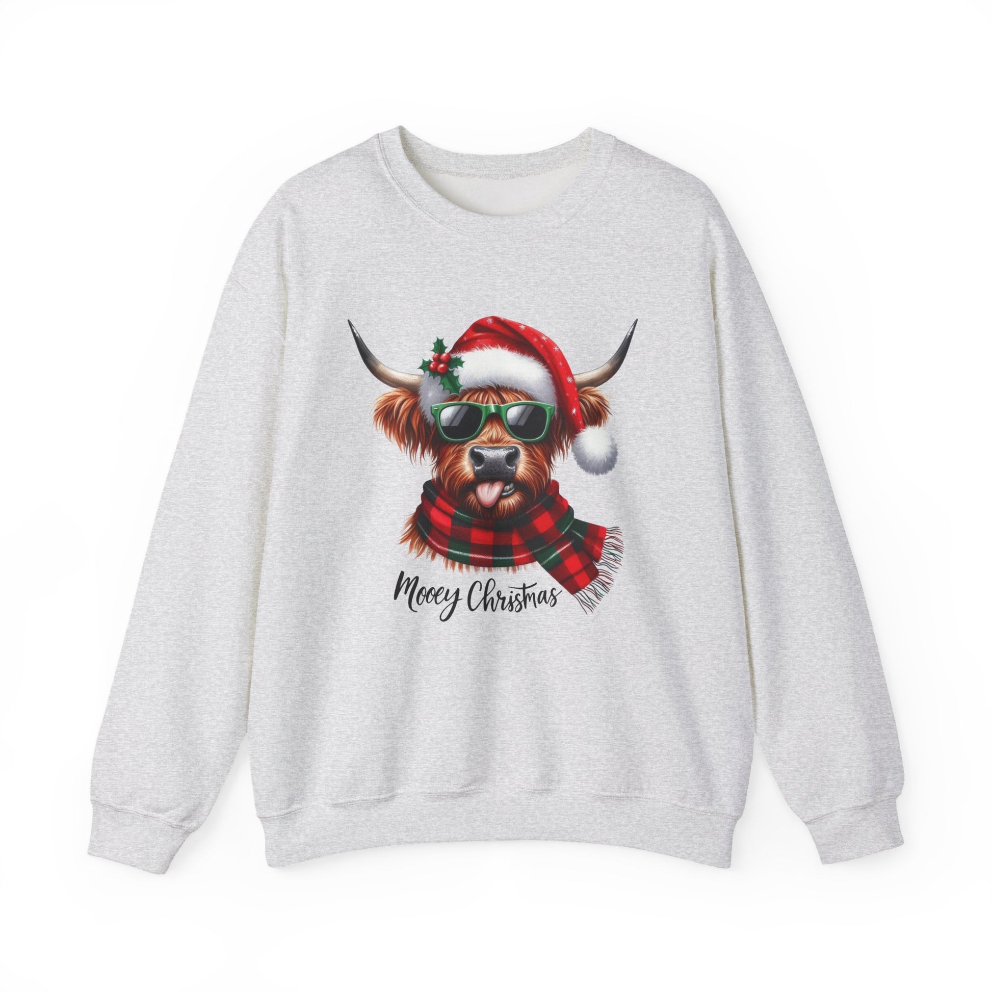 Christmas Highland Cow Sweatshirt – 'Mooey Christmas' Holiday Crewneck