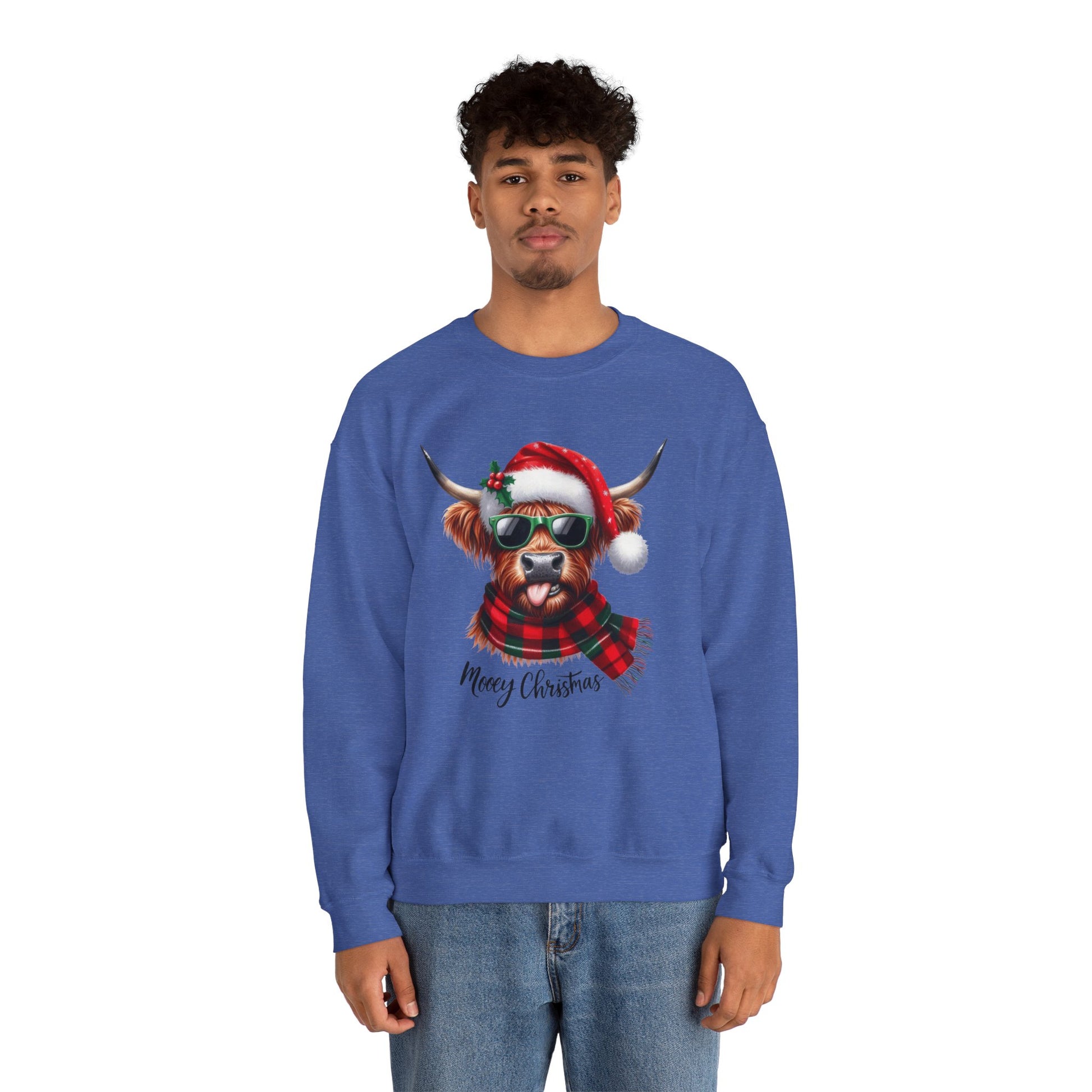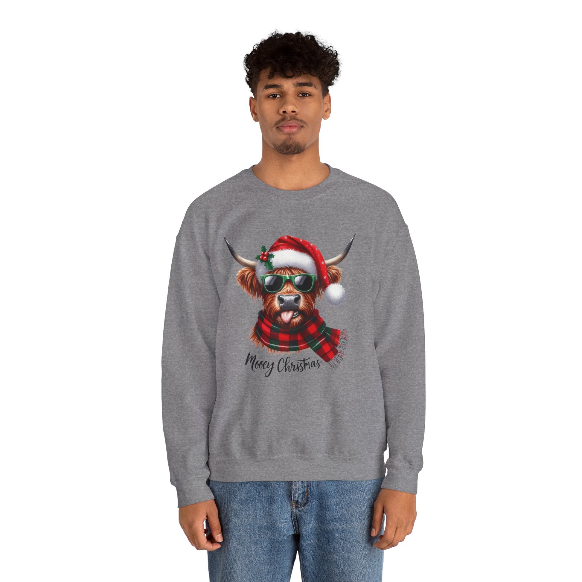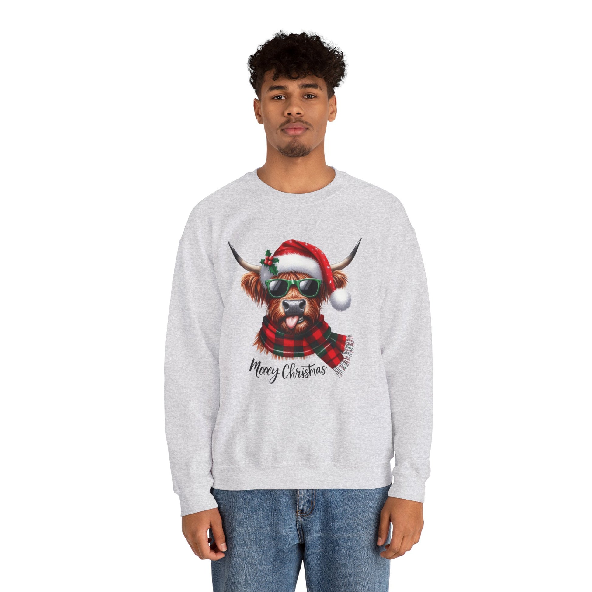 Christmas Highland Cow Sweatshirt – 'Mooey Christmas' Holiday Crewneck