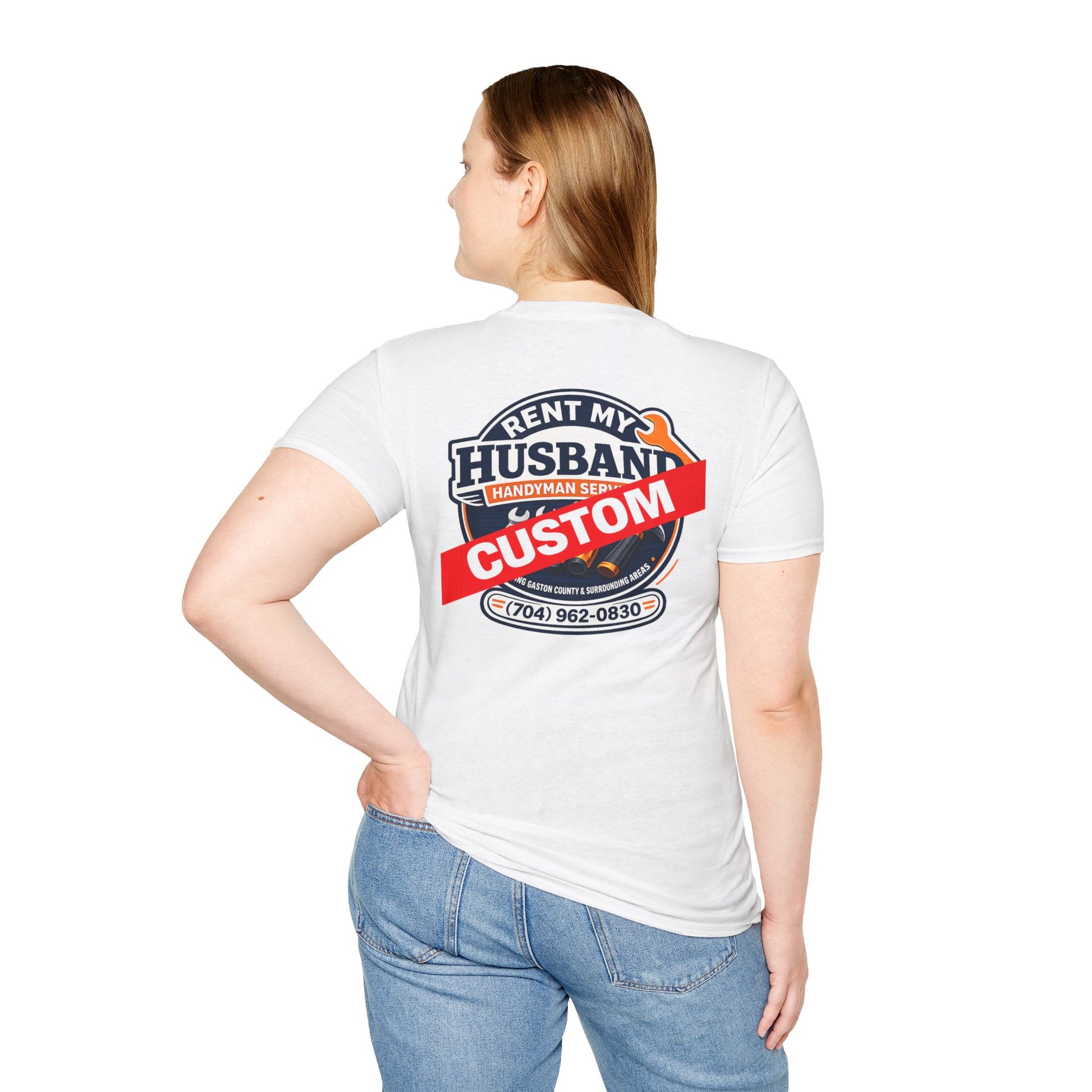 ** CUSTOM** Front OR Back. Printing example Rent My Husband Handyman T-Shirt – Funny Dad Mechanic Gift