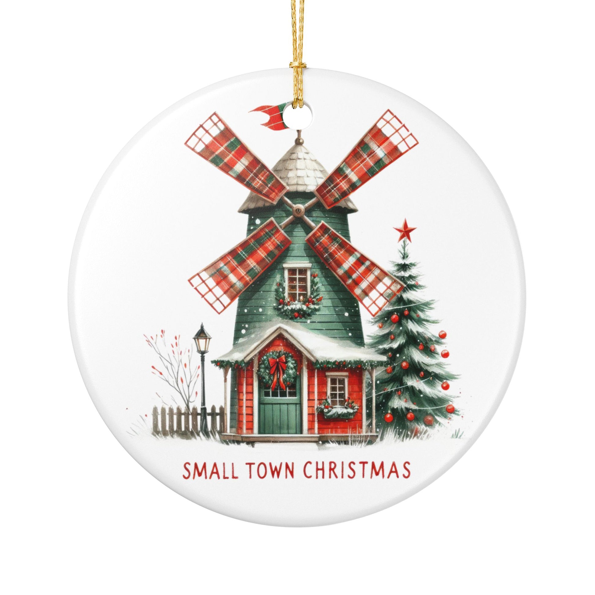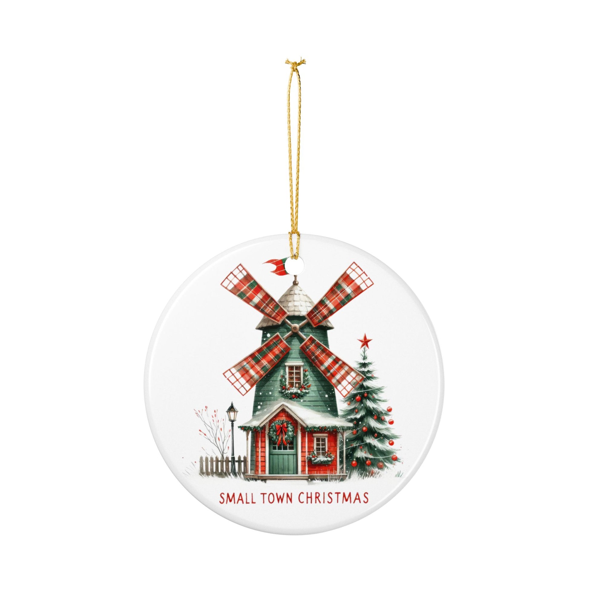 Small Town Christmas Ceramic Ornament — Windmill Holiday Decoration