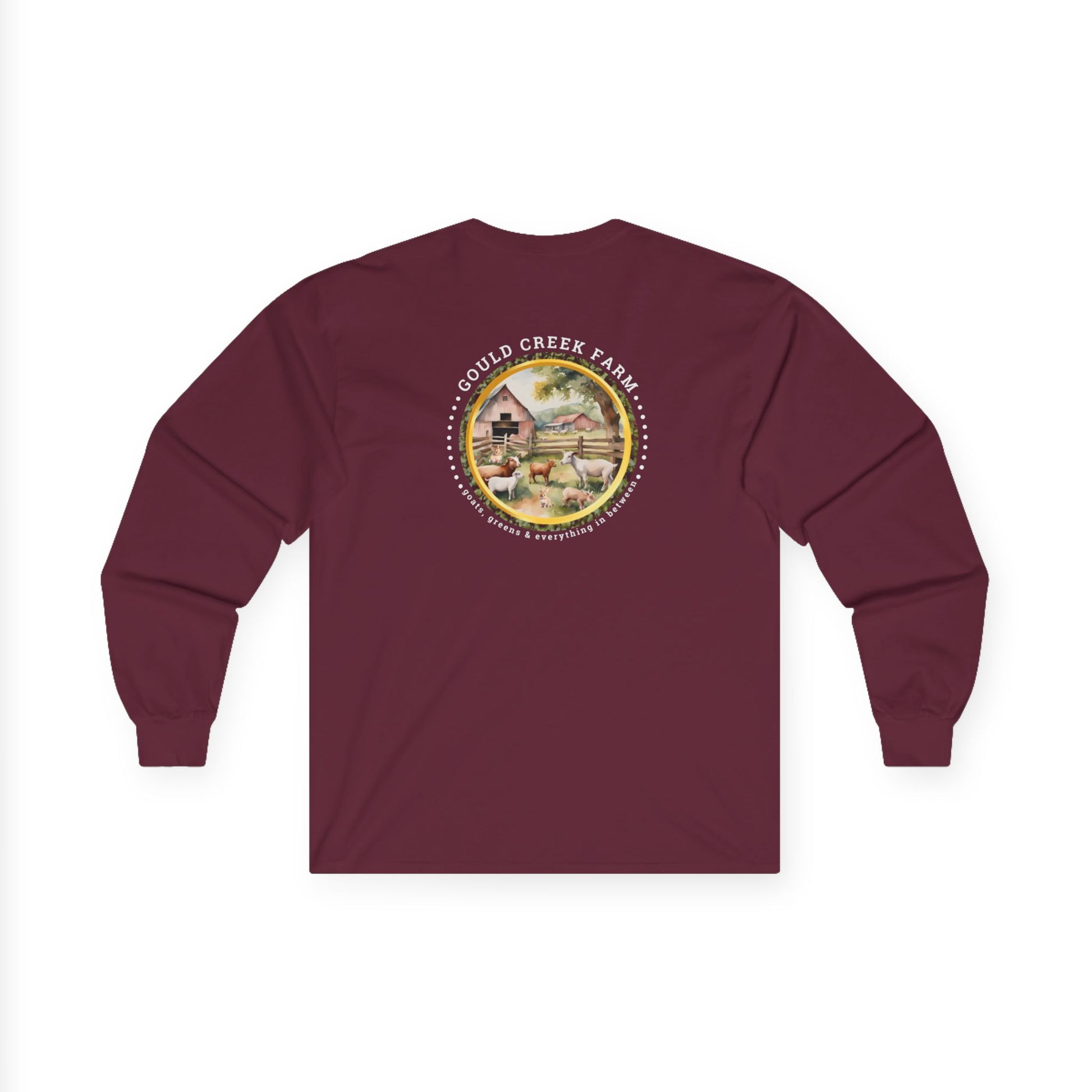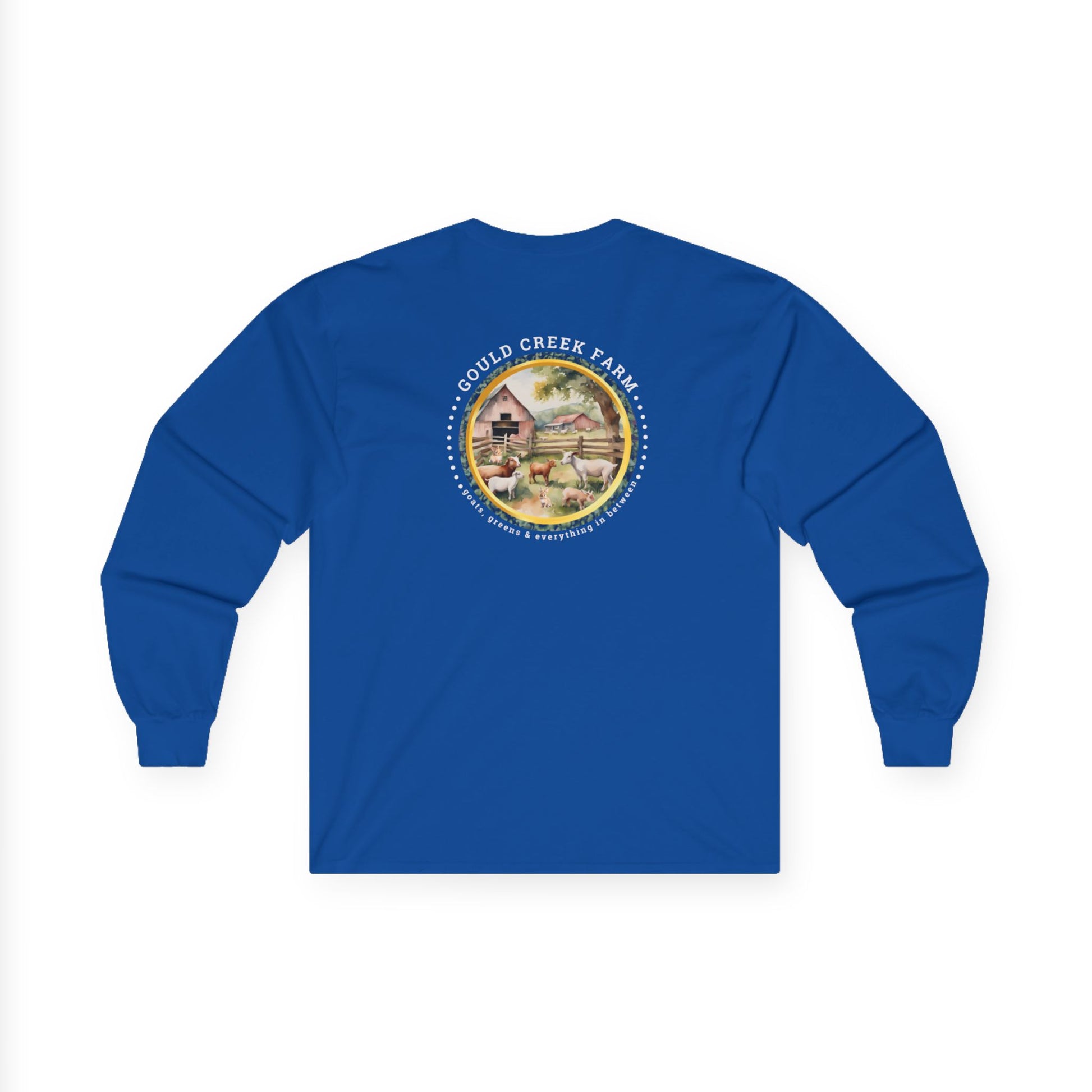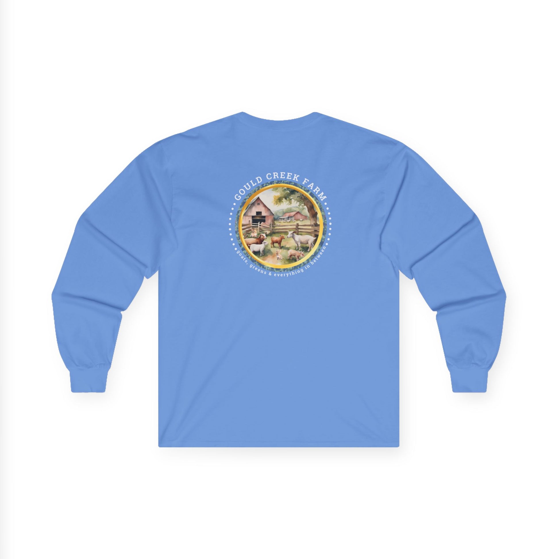 This TTW Beads and Gould Creek Farm long sleeve tee offers a comfortable fit with a vintage feel. Perfect for adults seeking a classic fit shirt with environmentally-friendly manufactured cotton. Ideal for casual wear and outdoor activities, suitable for holidays and everyday wear.